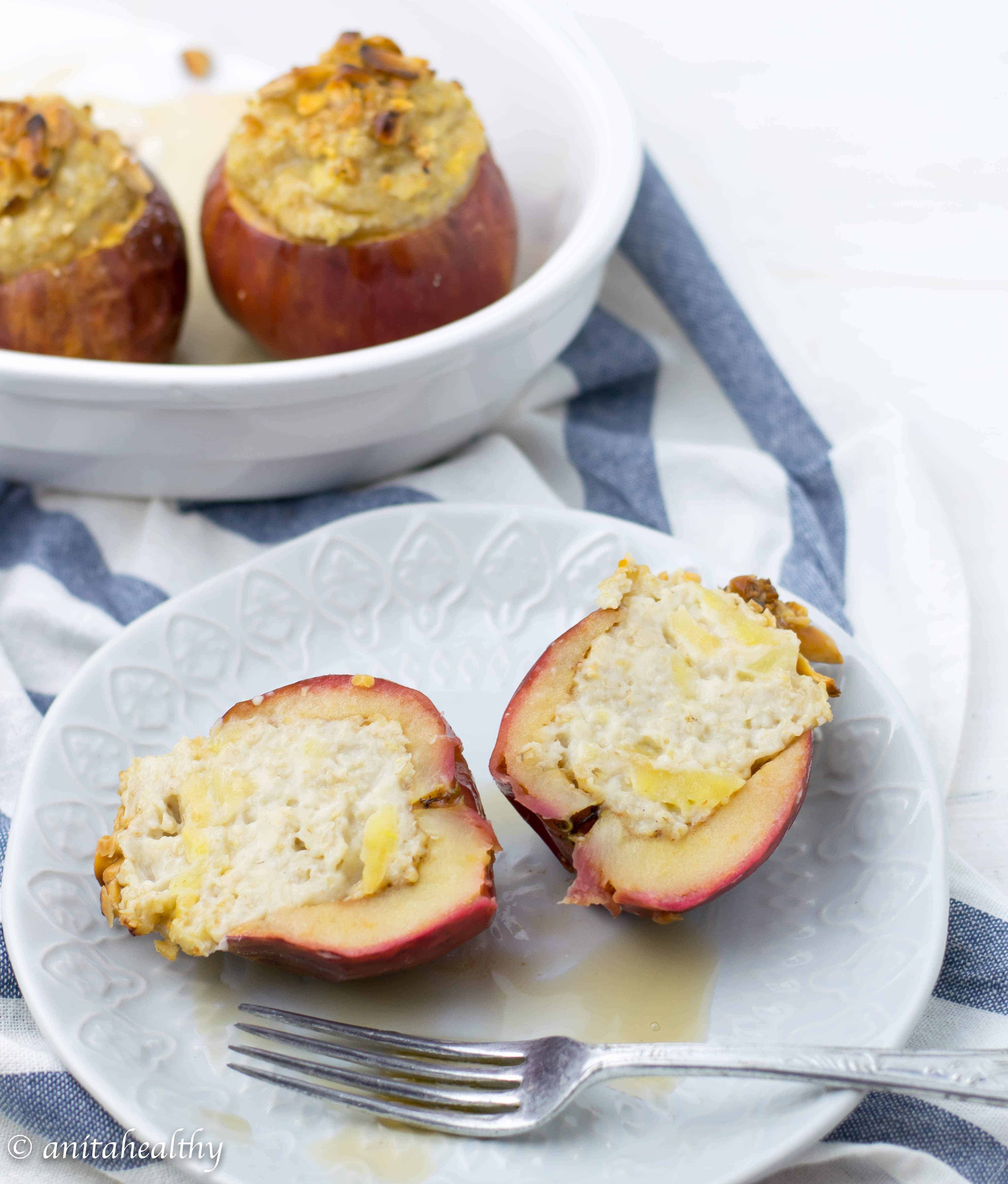 Quando se trata de invenções saudáveis na cozinha, já sabem que estou sempre pronta! Normalmente inicio a semana com papas de aveia, por ser fácil de preparar. Mas desta vez decidi comê-las de outra forma. Pois é, estas maçãs assadas recheadas com aveia ficaram uma delícia!